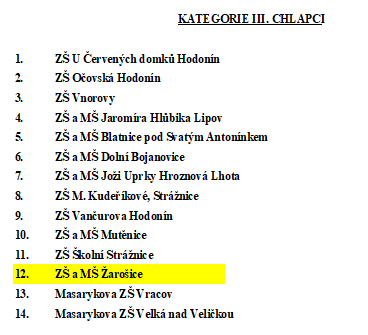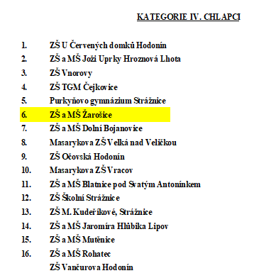 Ve starší kategorii chlapců naši běžci předvedli skvělý týmový výkon. V silné a početné konkurenci obsadili krásné 6. místo, což je velký úspěch a odměna za jejich nasazení.