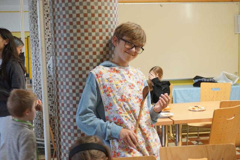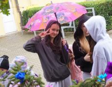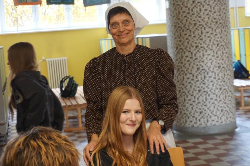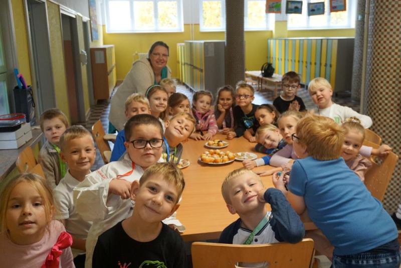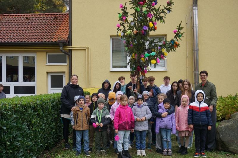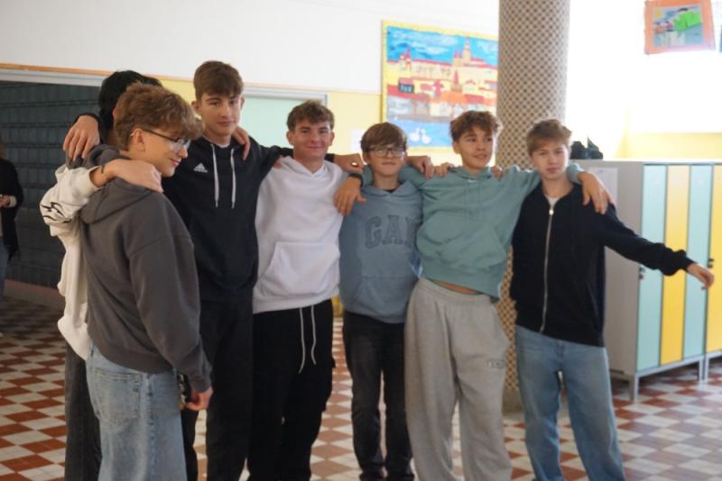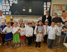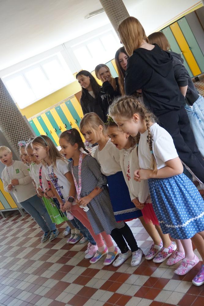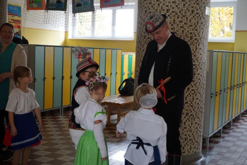 Opět se sešli žáci 1. a 9. ročníku, aby spolu něco zažili. Tentokrát si zkusili hody nanečisto. Kdo mohl, oblékl si kroj. Nechyběl ani sklepník a stárka se stárkem. Nejprve jsme začali vyrábět růže na májku, kterou jsme pak před školou nazdobili. Vyzkoušeli jsme si i stavění máje a samozřejmě nechybělo ani žádání pana starosty o povolení hodů a předání práva. Písnička "Tlučů, tlučů, se nesla celým patrem školy, když si stárek "šel" pro stárku. Nakonec byli všichni pohoštěni koláčky i hodovým cukrovím. Právo bude příští rok předáno našim nástupcům.