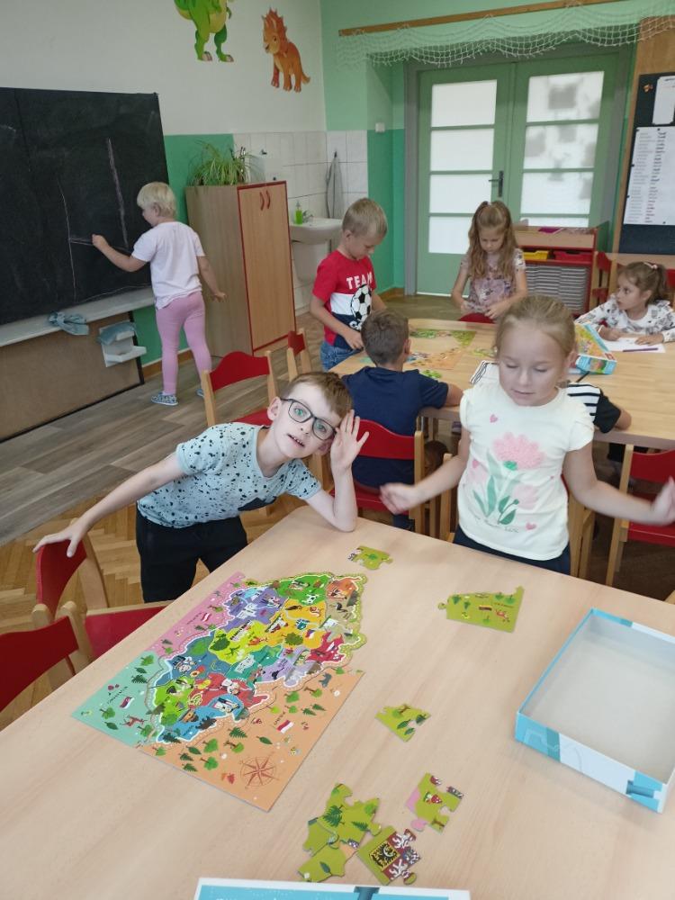 Hned od prvních chvil u nás bylo opravdu živo. Někteří jsou ve škole teprve krátce, a tak si zvykají i na nové věci v družině. Proto jsme hodně času věnovali vzájemnému poznávání, při němž spousta dětí našla nové kamarády. Ti protřelejší a znalí provozu družiny si po prázdninách zkontrolovali, zda je vše na „svém“ místě, objevili několik novinek a přivítali se s novými kamarády. Hned v září nás čekalo množství různorodých aktivit, aby si každý našel, co ho baví. Společným zářijovým cílem bylo seznámit se s celoročním plánem školní družiny - CESTOU KOLEM SVĚTA.